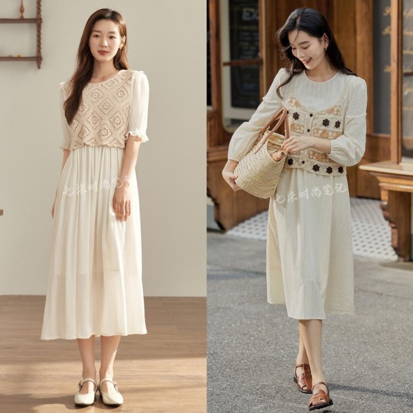在忽冷忽热的早秋,也可以叠穿连衣裙,让简单的裙装又有了新意,给人感觉很温柔很文艺。