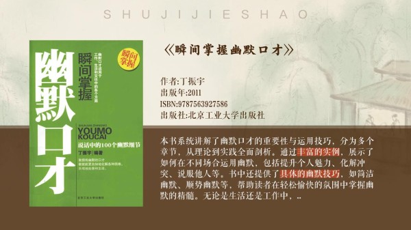 正如《瞬间掌握幽默口才》一书中所提到的, 在演讲或生活中,突发状况往往为幽默的产生提供了绝佳的土壤。优秀的演讲者或生活智者,能够敏锐捕捉这些意外情况,巧妙地转化为引发听众共鸣的幽默元素。这种即兴的幽默不仅能够化解尴尬,还能增强与听众的互动,提升个人魅力。