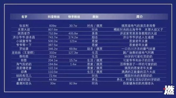在本土青年与回流青年的不断融合中,已与一二线城市无缝连接,物质与精神消费,已经产生与一二线城市趋同的信号。所以在娱乐营销上,要采取“多元素使用、多渠道匹配、多场景渗透”的策略。 快手抖音的内容也明显顺应了这一点,其中比如“西藏冒险王”花费6年时间几乎走遍西藏,“外卖拳王张方勇”从外卖小哥到职业拳王的变化,有段时间相当火的乡村奥特曼创作者“3锅儿”、农村发明家“手工耿”,每一种内容都出乎意料,又足够新奇。 这也体现出如今娱乐创作的第二个关键词,创作自由。 一边是传统综艺陷入题材同质化的痛点,一边又是各种短视频主播不断创新的娱乐题材,比如围绕美食,就可以出现一系列形式:将前期美食制作做成教育干货、后面吃饭也可以做成吃播,甚至还可以再剪一期将吃播变成ASMR(催眠音频)…….当然,也不乏有更多垂直化的创意内容,火了以后,运用电视剧、综艺、音乐、游戏等多个渠道进行更大范围传播。 这种利用创作者的特有身份标签,加上个人才华,以此满足不同受众,如一二线人群的猎奇、工作发泄需求;小镇青年、老龄人群的日常消遣需求。 其次,谈谈这几年也屡被热议的银发一族。QuestMobile在2018年7月发布的中国移动互联网“银发经济”洞察报告显示,移动网民中“银发”人群规模已超过5000万,此外,CNNIC于8月30日发布的《中国互联网络发展状况统计报告》显示,截至2019年6月,50岁及以上网民群体占比由2018年底的12.5%提升至13.6%,中老年用户流量呈上升趋势。 快手抖音上也有诸多银发一族创作者,其中比如末那大叔、罗姑婆、张双利等,创作领域也多是娱乐,以表演生活片段、圆年轻梦、角色扮演为主,也展示了极其理想与丰富的老年生活。