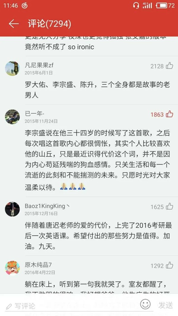 网易云音乐APP李宗盛歌曲《爱的代价》评论区