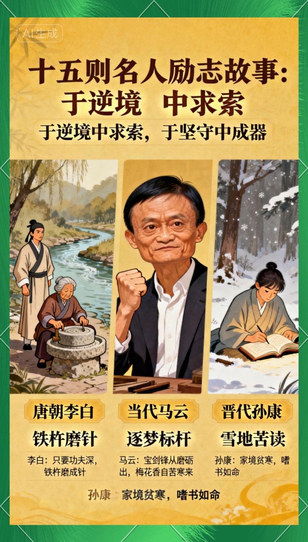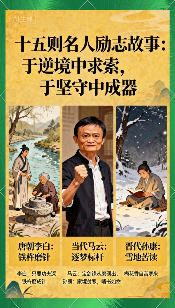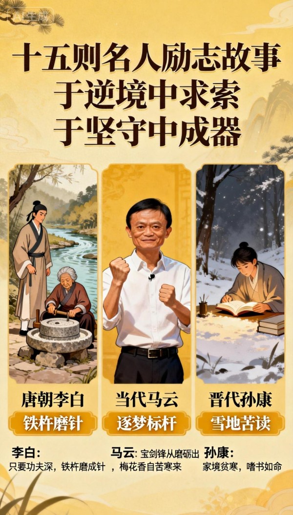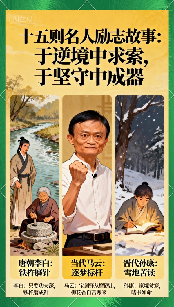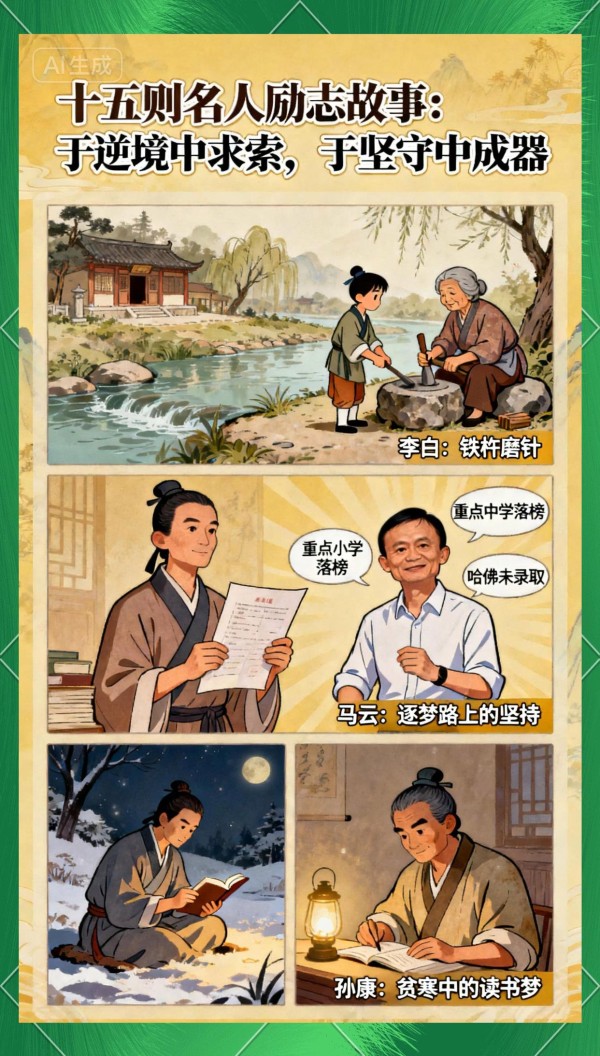这些名人的故事,虽时隔千年,却都蕴含着一个深刻的道理:人生的每一步坚持,都会化作前行的光芒。