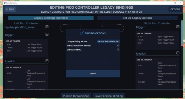 SteamVR输入绑定现在支持配置兼容性模式。这种模式能够模拟不同控制器的特性,甚至能提供一个不同的渲染模型。这意味着,为特定控制器类型设计的游戏现在可以兼容所有类型的控制器。修复了一个影响非原生头显(如Focus3、Quest、WMR)的问题。该问题曾导致使用v4.27及以上版本虚幻引擎(或其他版本也可能受到影响)的应用出现不必要的额外延迟。添加了一项新修复,允许在十字键的不同方向之间设置死区(角度介于0和π之间)。