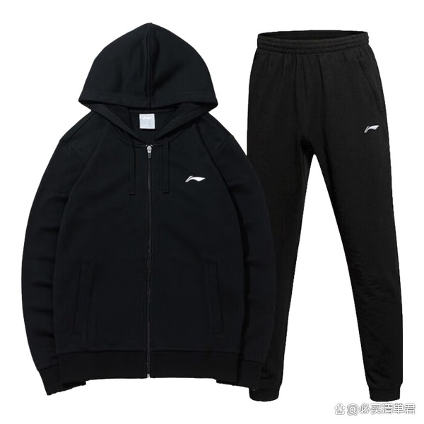 三、李宁运动套装男春秋季新款情侣开衫运动服休闲套装女跑步健身服卫衣 黑色/黑 L
