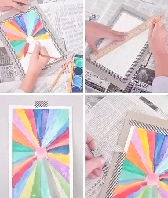 利用胶带、画笔或其他工具,在画板上划分出不同的色彩区域。