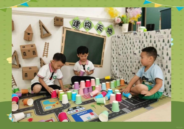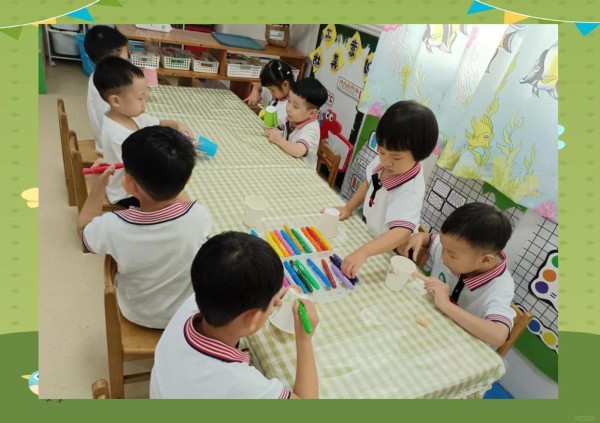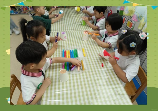 美工区内,孩子们热烈地讨论着纸杯的多种玩法。他们纷纷发表自己的见解,有的提议用纸杯画画,有的则跃跃欲试地开始了纸杯搭建的尝试。就这样,一场关于纸杯的奇妙故事在孩子们的欢声笑语中缓缓展开。