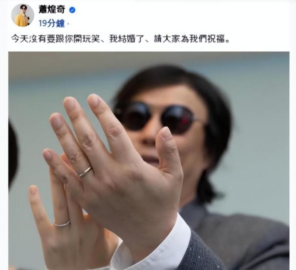 恭喜!49岁萧煌奇官宣结婚,和妻子晒结婚戒指分享甜蜜萧敬腾官宣结婚 晒甜蜜婚纱照:谢谢祝福!