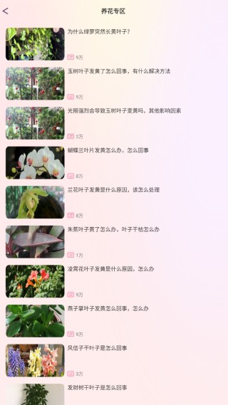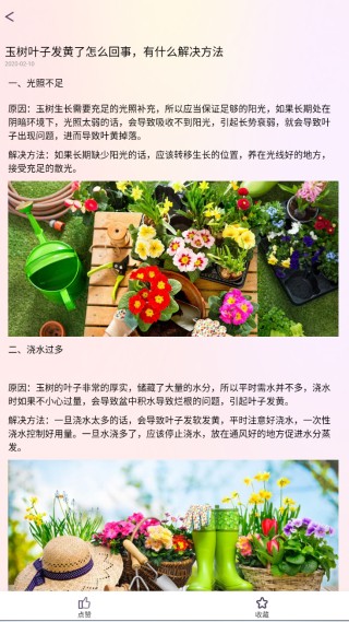 我的开心花园超实用,能学到超多花草知识。打开软件,养花、护花专区里满满都是干货,教你怎么把花草养得生机勃勃。碰上不认识的花草,直接用在线识别功能就能知道名字和养护方法。养花新手或者爱好者,都能在这找到需要的知识,赶紧下载试试吧。