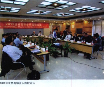 首届世界高等音乐院校论坛”:本论坛共聚集了来自国内外33位高等音乐教育机构领导人,他们以“文化交流”为主题,旨在促进高等音乐教育机构之间的合作。作为论坛的成果之一,便是于10月9日论坛闭幕式上由中国音乐学院院长赵塔里木及墨尔本音乐学院院长麦格里等与会专家代表三十多个国内外高等音乐教育机构联合签署了《2012文化交流倡议:促进高等音乐教育机构合作的北京共识》,会后各方院校一致同意定期举办或参加世界高等音乐院校论坛,定期发起有益于各院校/机构/组织的交流计划,并大力推动教学、科研及表演团体的互访,互派交流学生及教师。