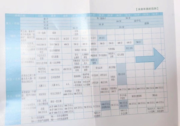 在规划了“梦想金字塔”并进行了细致的分类之后,下一步便是依据这个蓝图来精心制作“未来年表”。《你的时间有限,不要为别人而活》一书的作者,在20岁时就制定了长达十五年的规划。虽然有些人可能觉得十五年或更远的未来过于遥远,但重要的是先将其具体化。即便在实现过程中可能遇到变化,但至少我们是在朝着目标稳步前进。而且,即使梦想实现的时间晚一些,也并无大碍,关键是要保持那份追梦的激情与决心。