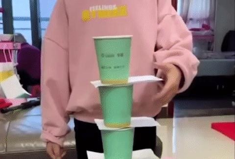 将杯子首尾相连,形成一条直线,参与者需将球从起点吹向终点,最先成功将球吹入另一个杯子的玩家即为获胜者。