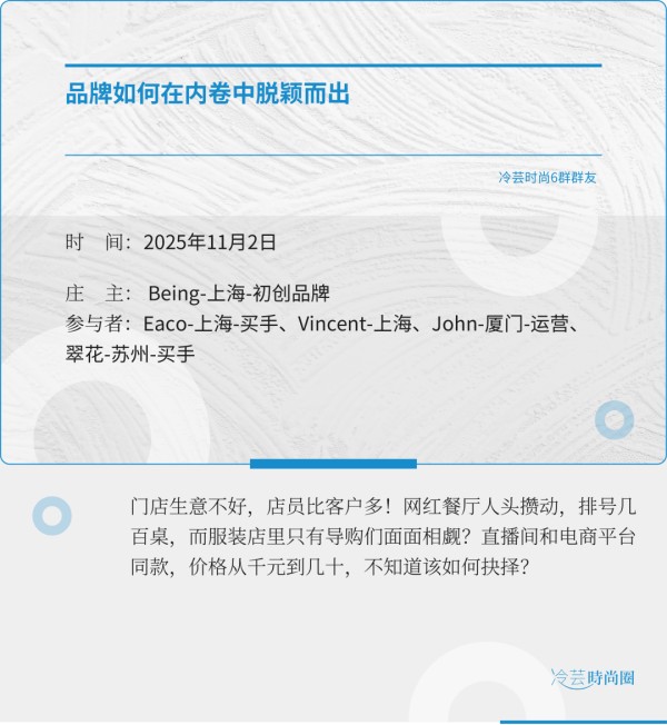 ▼以下的冷芸时尚圈讨论是就行业问题的讨论及总结。这些分享属于集体智慧的结晶。(它们并不代表冷芸个人观点)。希望通过此种方式能让更多行业人士受益!
