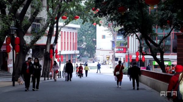 居民们在九龙坡区民主村社区悠闲散步(央广网发 刘思怡 摄)