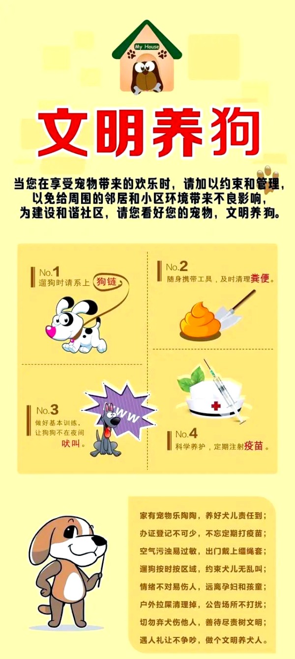 7、请及时清理犬只排泄的粪便,保持公共环境的清洁。
