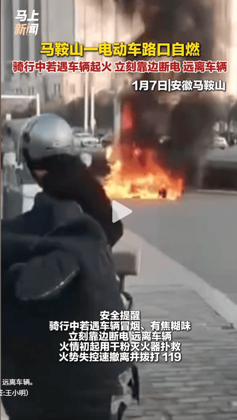 部分内容引用于: 1、中国应急管理报融媒体工作部《电动车行驶中起火!千万警惕!》 2、马上新闻短视频《马鞍山一电动车路口自燃》 3、湖北省应急管理厅、湖北应急广播《如何预防电动车火灾事故的发生?》返回搜狐,查看更多