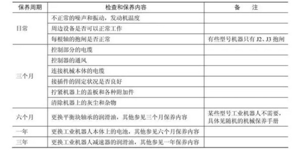 FANUC工业机器人的具体保养内容如表1-2所示。
