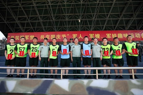 部队官兵赛场上,参赛队员在结合趣味性、对抗性的足球、篮球、拔河、羽毛球、乒乓球、台球、四国军棋、象棋等9个比赛项目中,你争我夺、奋勇争先,赛场外锣鼓声、呐喊声、助威声响彻云霄,机关与基层同台竞赛,干部与战士相互比拼,现场氛围一浪高过一浪。