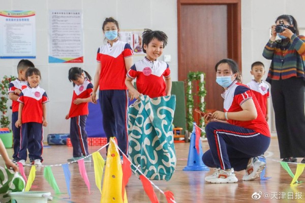 4 / 9 六一国际儿童节之际,本市南开区第十五幼儿园举办“童心向党·健康成长”幼儿趣味运动会,孩子们在妙趣横生的运动项目中度过了一个难忘的儿童节。(记者 胡凌云 通讯员 王英浩 摄)