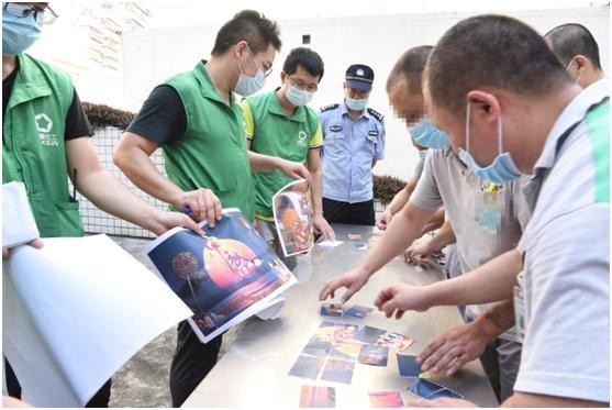 参加文化拼图的戒毒人员两两一组分别聚在桌子的两头,聚精会神。文化拼图拼的就是眼疾手快。散落的纸片如新造的蓝图,让每个参与者懂得控制着命运年轮的是自己,只有拼搏才能够成长。