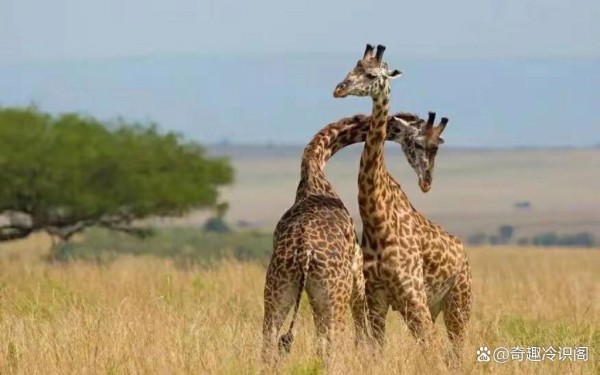 8.长颈鹿这种高大而优雅的动物,它们在求偶时有着独特的方式。由于长颈鹿体型巨大,拥抱这种常见的求偶动作对它们来说确实不太现实。于是,它们经常会用脖子和对象一起拧出爱的麻花。你可以想象这样一幅画面:两只长颈鹿面对面,它们长长的脖子相互缠绕,就像在编织一个甜蜜的花环。这种独特的求偶方式,不仅体现了长颈鹿之间的亲密和爱意,也让我们看到了大自然中生物为了繁衍后代而展现出的奇妙智慧。