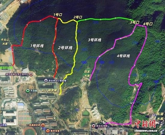 浙江农林大学设置的“丛林穿越路线”。 (浙江农林大学供图)