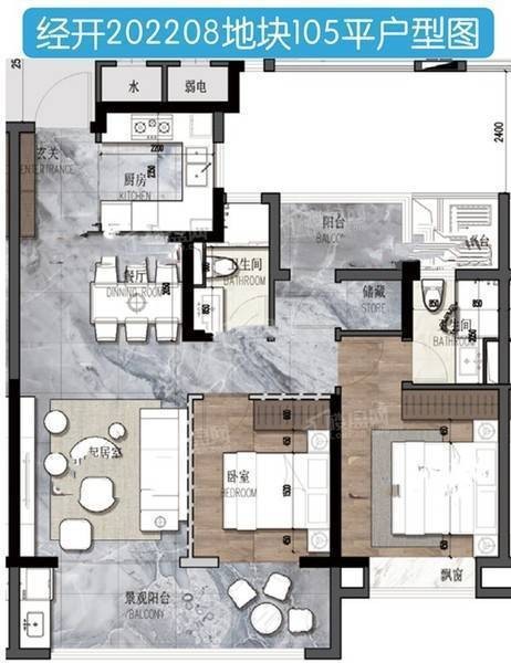105㎡三室两厅两卫 —— 进阶型婚房,预留成长空间