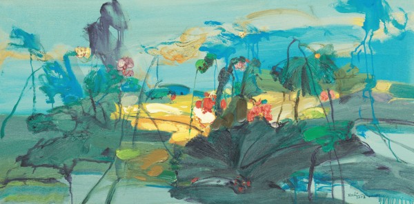 徐里:荷花其实非常难画。中国画中的荷花,尤其是写意荷花,本身就具有较强的抽象性。工笔荷花可以做到非常写实,但写意创作如果过于具象,就容易失去艺术意味;如果完全抽象,又可能导致会远离观众。关键在于如何在具象与抽象之间找到平衡,画出意趣。也就是通过画面表达内心对荷花的寄托、想象和情感,让观众产生共鸣。同时,我也希望通过油画语言来表现荷花,探索一种不同于传统水墨的表现方式。通过画面的意趣,引导观众进入中国文化所强调的诗性、诗意,以及情感和精神层面的追求。