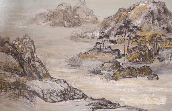 西方传统风景画强调具象、科学地再现自然;而中国山水画融入了艺术家对哲学、文化和审美的理解,强调“天人合一”。在达·芬奇逝世500周年之际,我的作品《对话》被意大利达·芬奇希望博物馆永久收藏,更成为馆内陈列的首幅中国艺术家作品。在《对话》中,我截取了达·芬奇21岁创作的一幅画作的一小部分,将西方现实主义的景观,与中国山水中“什么都没有却最美”的自然意境融合在一起。远看是一幅中国山水画,细看之下,却能发现东西方两种文明在画面中的巧妙共存。