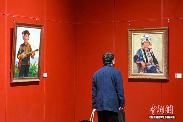 1月9日,云南昆明,观众观看展品《哈尼姑娘》。中新社记者 李嘉娴 摄
