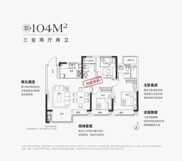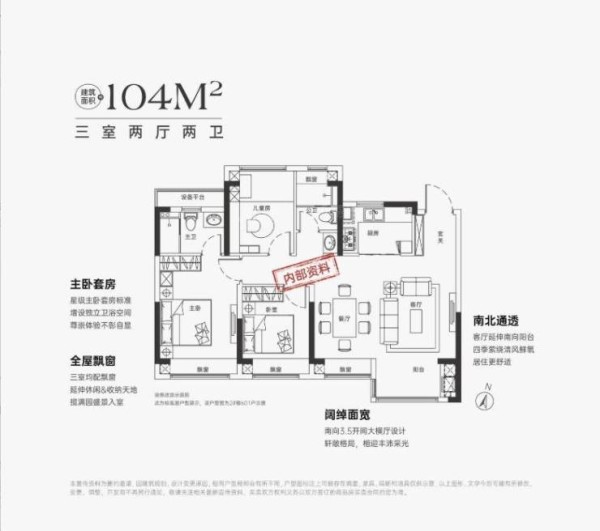 目前只有两个户型,104㎡和115㎡,两种户型布局差距不大,区别在于115㎡的户型主卧更宽敞,可以设置一个衣帽间。104㎡户型的特点包括阔绰面宽、南北通透、全屋飘窗和主卧套房设计,给购房者带来舒适宽敞的居住体验。