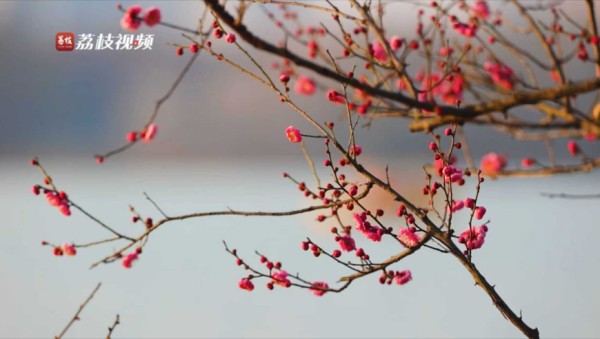 寒香破冰!南京玄武湖红梅初绽生机盎然