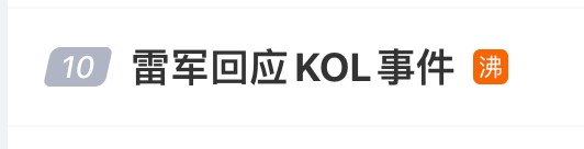 针对此前引发热议的KOL事件,小米公关部负责人徐洁云现身雷军直播,雷军表示,这件事情为什么这么严重,不是因为这个KOL批评了小米,也不是因为这个KOL得罪了米粉,是因为这个KOL一直在贬低,甚至诅咒小米用户,“作为企业我们肯定不能容忍”。