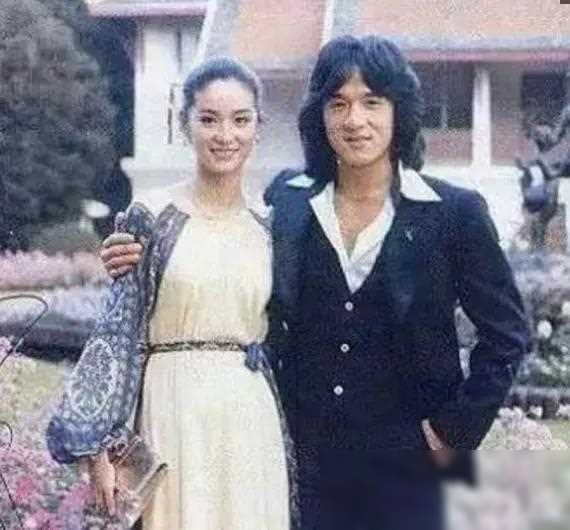 首先是林青霞和成龙年轻时的合影,两个人面带笑容,十分开心。他们合作了《倚天屠龙记》、《警察故事》等经典电影,而林青霞与成龙之间还有过一段传闻中的恋情。