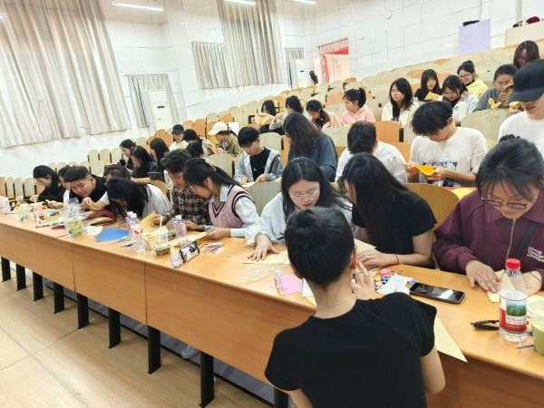 交流活动分为三个环节开展,其中抢凳子和击鼓传花的暖场游戏让中外学生迅速消除隔阂。在油纸伞制作等环节,中国学生为留学生介绍了油纸伞在传统文化中的文化寓意,并邀请留学生与中国学生共同制作油纸伞。留学生们在中国学生的指导下,以水墨丹青勾勒心中的中国美景。