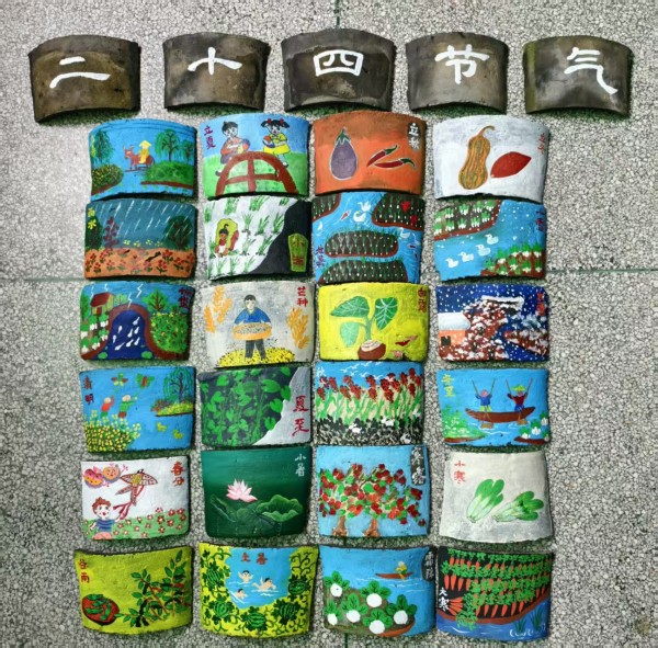 活动期间,参与者们利用废旧物品进行创意改造,赋予旧物全新的生命和意义。新联合村村民高建培和沙维祥特别赠送了老染坊的青瓦,供大家创作二十四节气农民画小品,这一举措为活动增添了独特的文化元素和新意。活动现场,参与者们充分发挥想象力,将奶粉瓶、旧衣物、簸箕、葫芦等废旧物品变成了精美的艺术品。簸箕画和葫芦画等作品不仅展示了民间艺术之乡的文化底蕴,也体现了环保与艺术的完美结合。