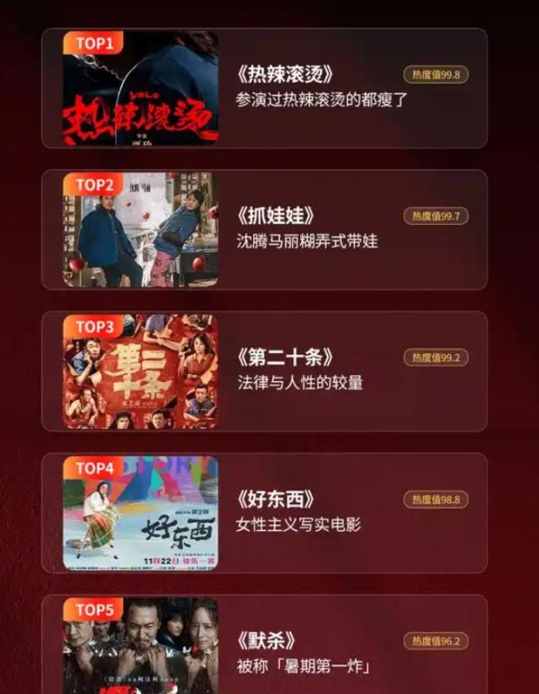 而她自导自演的电影《热辣滚烫》更是成为春节档的爆款,这部电影不仅票房大卖,还凭借其深刻的情感内涵和精湛的表演,荣获最受关注电影第一名的殊荣。