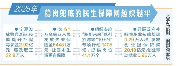 放眼宁夏,稳岗兜底的民生保障网越织越牢,一组组数据见证着民生实事的成效。2025年,就业民生实事让群众的获得感更足、幸福感更可持续、安全感更有保障,为城乡发展注入温暖而坚实的持久动力。(记者 马照刚)