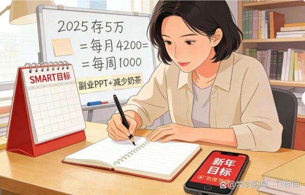 比如“今年要存钱”这个模糊愿望,用SMART法则拆解后就是:“2025年全年存下5万元(具体、可衡量),每月存4200元,通过减少不必要开支(比如少喝奶茶、少买衣服)和增加副业收入(比如做PPT代做)实现(可实现、相关),每月最后一天复盘存钱进度(有期限)。”
