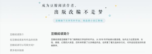 打开豆瓣阅读页面,点击“成为作者”,你能看到这样一句醒目的标语:“成为豆瓣阅读作者,出版改编不是梦。”