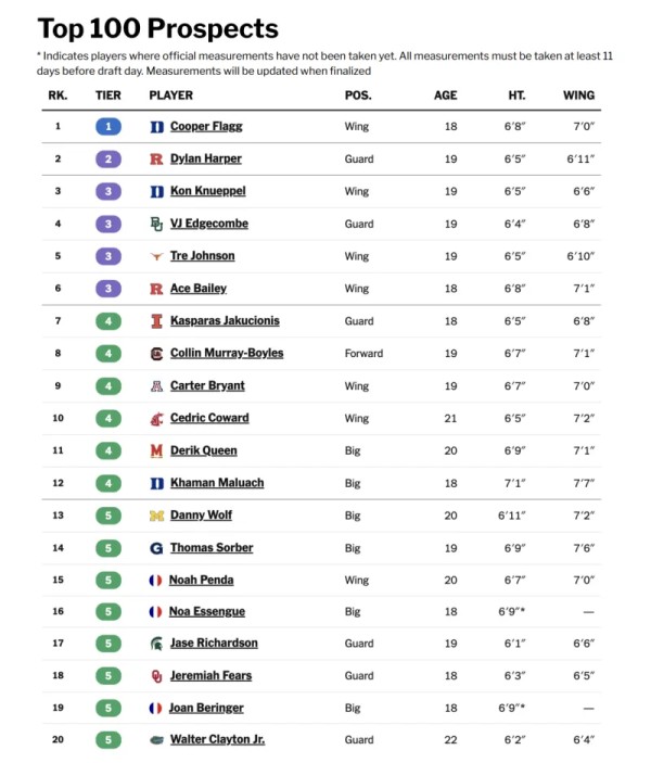 【文章翻译】2025年选秀指南:百大新秀排名与分级