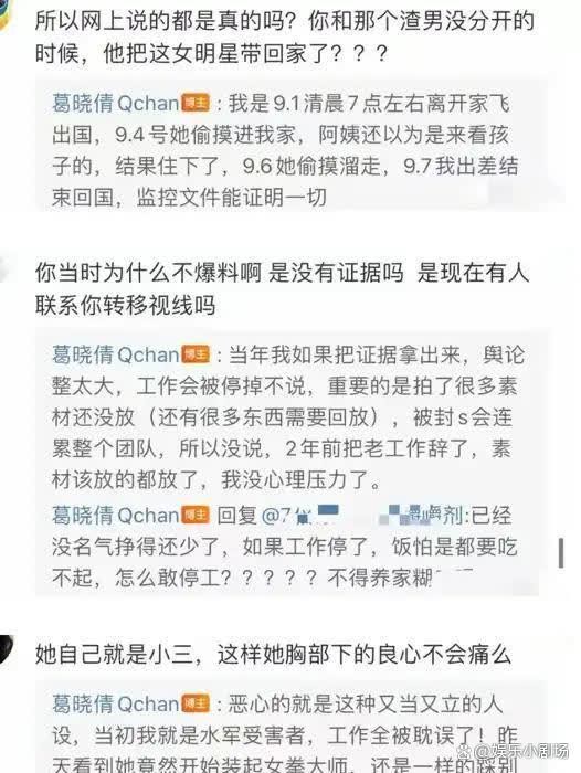葛晓倩的爆料无疑把整个事件推向了一个新的高潮。但她为何选择在这个时间点曝光这些内容?部分网友猜测,可能是长久以来积压的情感得到了宣泄的机会,也可能是某些外界因素促使她选择了这样的方式。然而这一切仅仅是猜测,真正的原因只有当事人才能告知。