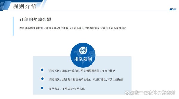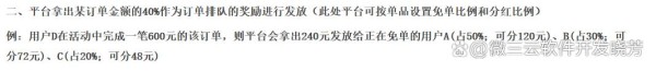 平台会拿出某订单金额的 40% 作为订单排队的奖励进行发放(此处平台可按单品设置免单比例和分红比例)。
