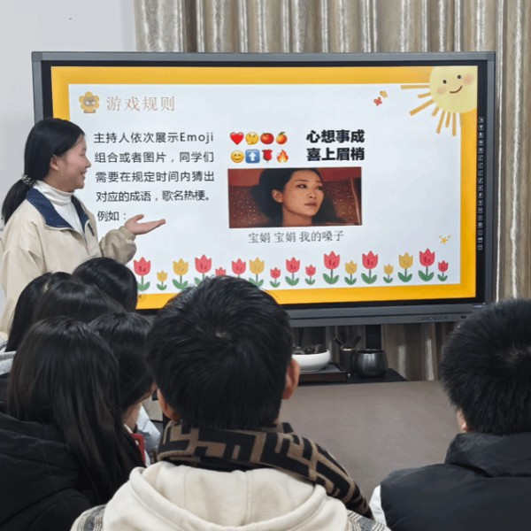 在倾诉环节中,主持人带领同学们敞开心扉,倾诉自我,分享自己的情绪感受,同学们通过谈论切身相关话题,聆听彼此的心里话,拉进了同学间的心理距离。随后进入游戏环节,“猜梗猜歌词”点燃全场,同学们竞相展现智慧火花,现场氛围高涨;“房树人”绘图,大家自由创作,通过画作分析心理特点;“OH卡”故事接龙,抽卡人从不同角度解创意解读卡牌含义,多维视角洞见自我。同学们笑容满溢,深深沉浸在欢乐的氛围中。