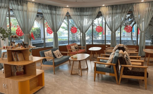 单人间内,270°观景阳台将湖光山色引入室内,智能护理床可调节至最舒适的弧度,防滑地胶与感应夜灯默默守护着夜间安全;双人间采用分床设计,中间共享的会客区摆着软塌与茶几,老人们常在这里下棋品茶,笑声穿过半开的木门;套房的独立厨房里,家属偶尔下厨烹饪家乡菜,锅铲碰撞声中,亲情在烟火气里升温。