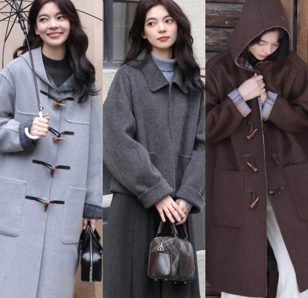 在牛角扣大衣的选择上,大家可以重点使用基础色完成穿搭。像下面的这几款大衣,都是对女性特别包容的存在,即使是成熟的女士,也可以轻松利用这种大衣,来弱化自身的气场。搭配打底衫,整组穿搭的构建就很完整了。