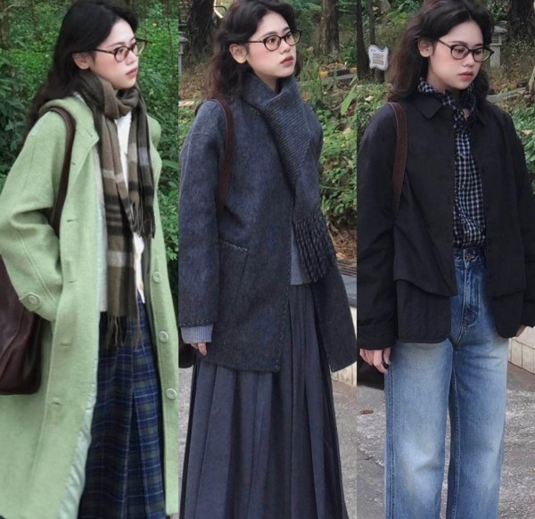 如果大衣选用的是格纹服装,增添了复古的气息,在裤子以及裙子的选用上,就可以用黑色等一些偏常规的单品进行组合。若是选取的是格纹裙,大衣就可以采用大地色等大衣,增添平衡的效果。