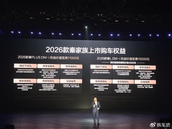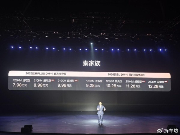 1 月 8 日,家轿市场迎来重磅升级!比亚迪秦家族正式推出 2026 款秦 L DM-i 与 2026 款秦 PLUS DM-i 210KM 长续航版双车,以 8.98-12.28 万元的亲民售价,搭配至高 15000 元的上市权益,重新定义插混家轿的价值天花板。