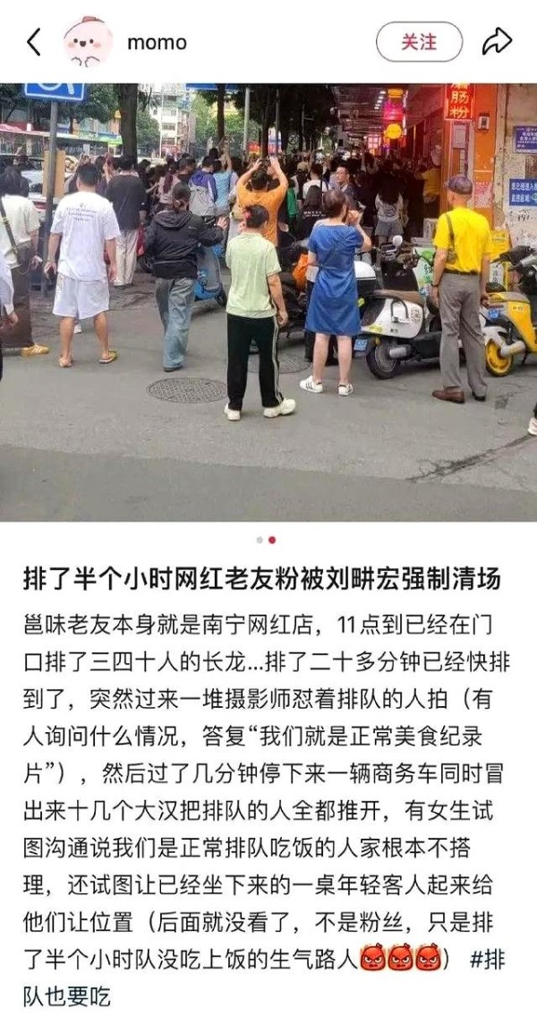 一个细节忒扎眼,网友说,当时有人问摄像师什么情况,对方支吾是“正常美食片子”。这句话,就埋下了龃龉的种子。您想想,您排了半晌队,结果人家告诉你只是拍个片子,您会不会觉着被糊弄了?