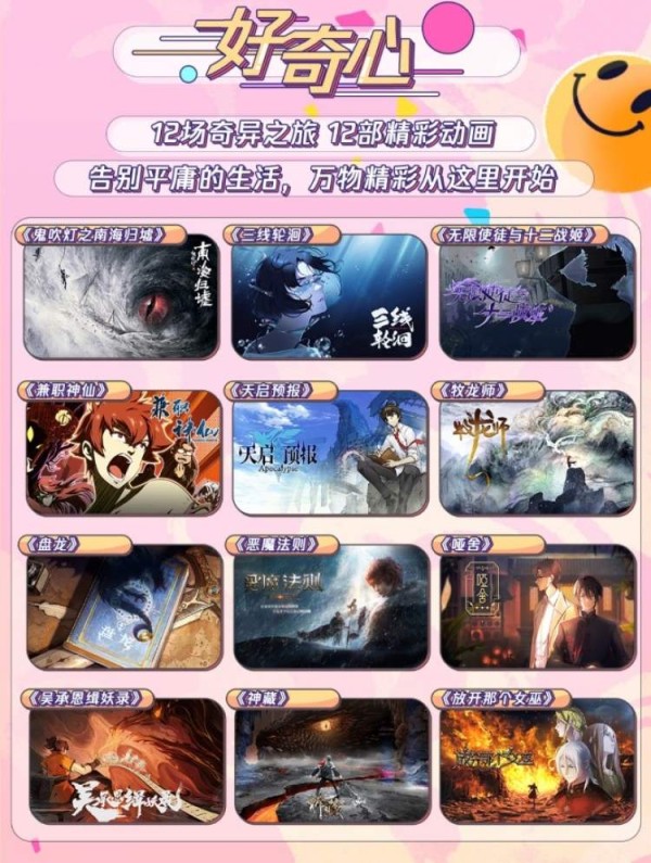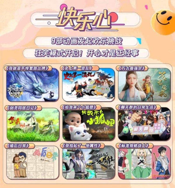 《史上第一混乱》《万古最强宗》等快乐心品类作品也将陆续上线,邀请观众即刻启程轻松欢乐之旅。