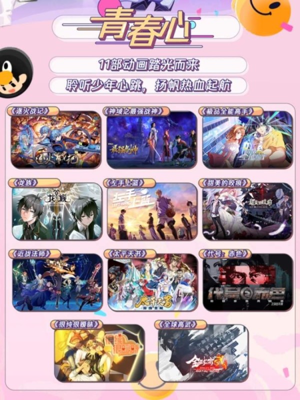 讲述热血篮球梦的《左手上篮》,即将于8月19日上线的《龙族》,以及《近战法师》《全球高武》等洋溢青春能量的作品共同组成青春心篇章。