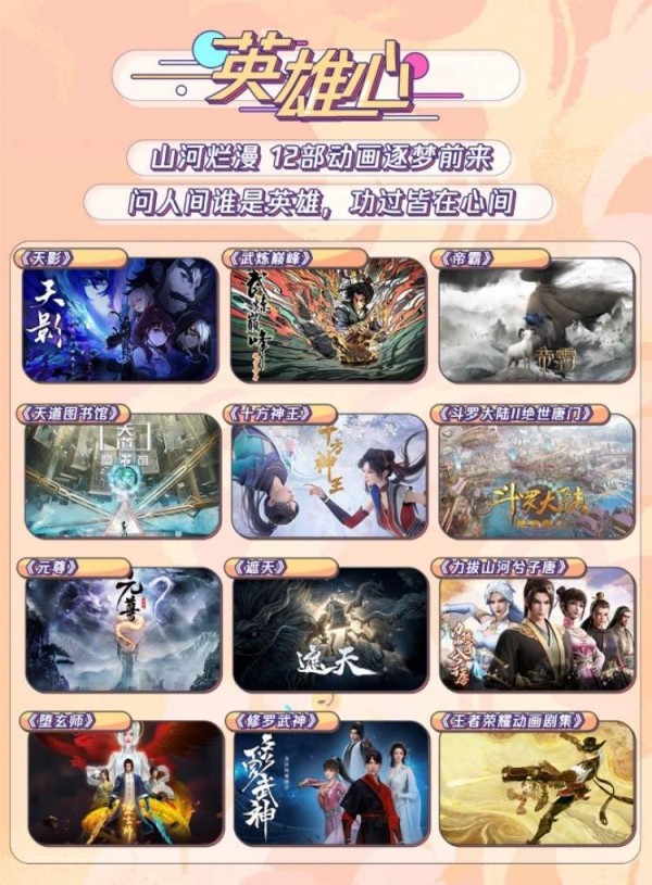 由国民级手游《王者荣耀》IP改编的《王者荣耀动画剧集》蓄势待发,影游联动令人惊喜,与将上线的《斗罗大陆2绝世唐门》《遮天》《元尊》等同属英雄心品类,为观众带来热血沸腾的英雄故事。